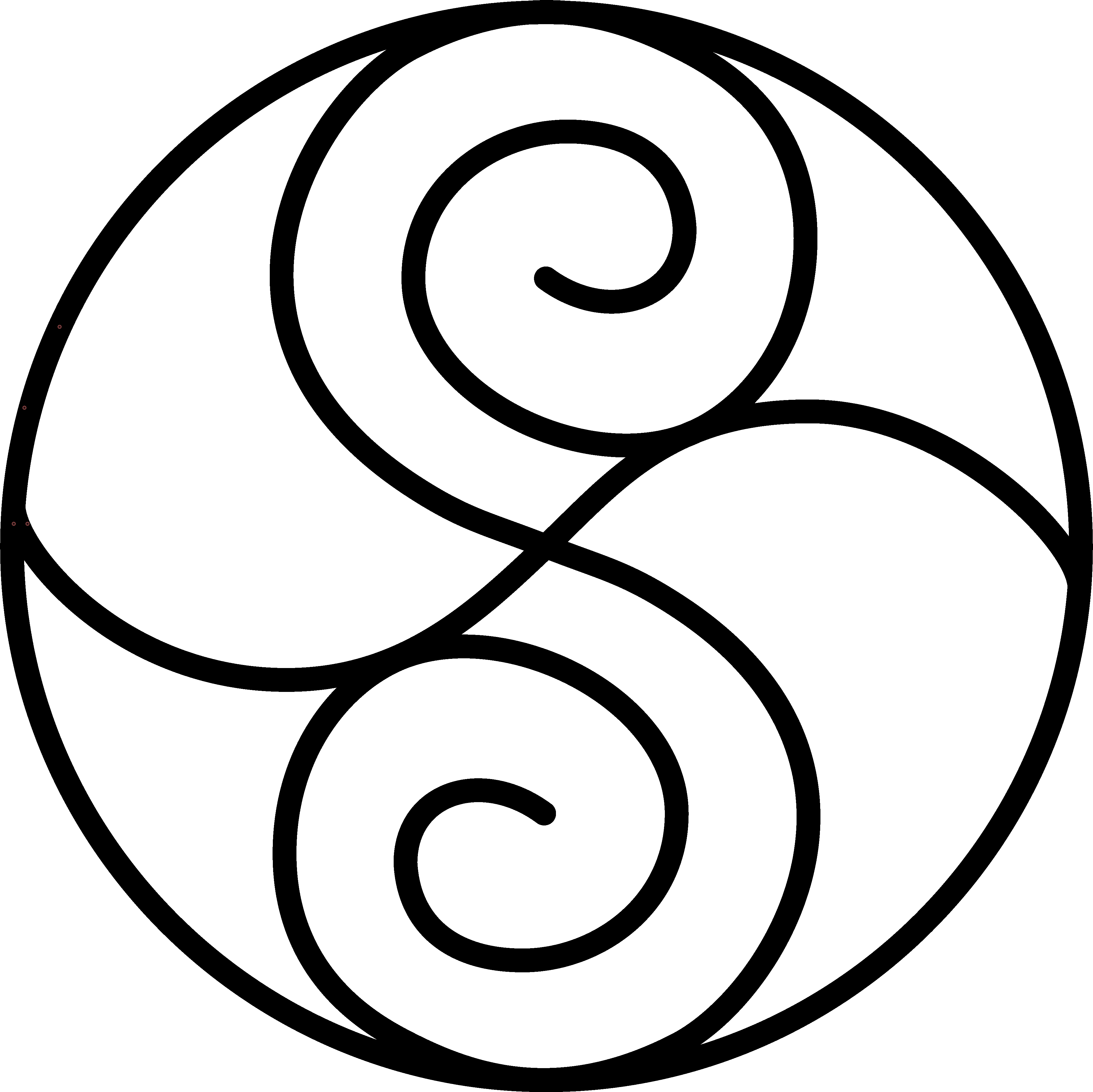 Mein Kosmogramm habe ich selber entwickelt als Energiemuster für meine geomantische Arbeit. Vordergründig beschreibt es das Aufgabenfeld meiner Tätigkeit: es geht um Landschaft, hier stilisiert in Berg und Tal, und ihre wirkmächtigen Energien, in der Erde und darüber, bis hinein in den kosmischen Raum. Sie drücken sich aus in Spiralen, links- und rechtsdrehend, aufladend und abladend, was als Ausgleich der Kräfte wirkt. Beide Kraftspiralen sind verbunden und bilden eine “Axis mundi”, eine Weltenachse, die das Oben und das Unten vereint.